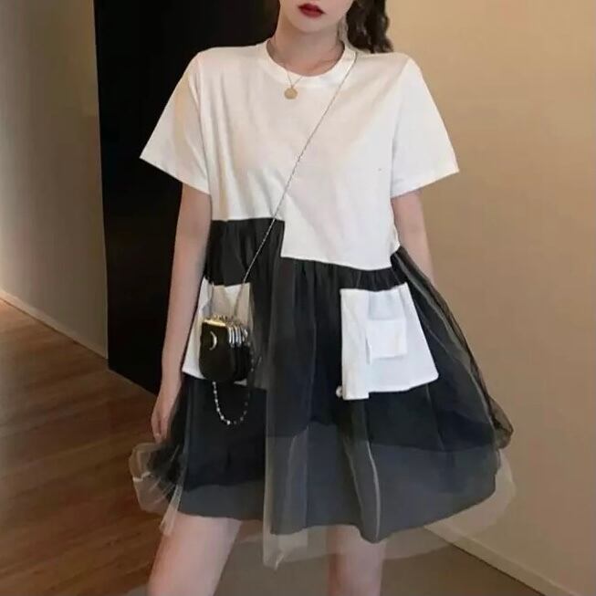 チュールデザインの大人かわいいチュニックワンピーストップスです