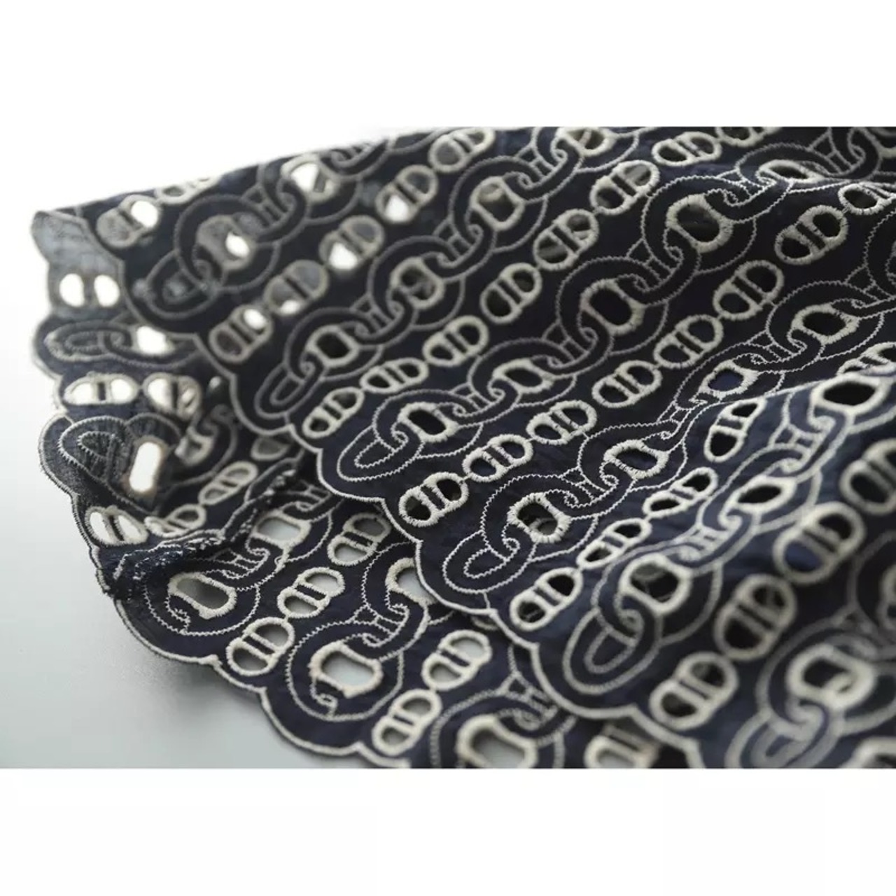 チェーンデザインのネイビーブルーが施された刺繍ワンピースです