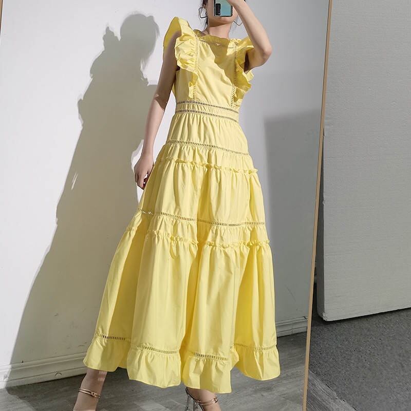 腕周りをスッキリみせウエスト周りも綺麗なラインにみせるワンピースです
