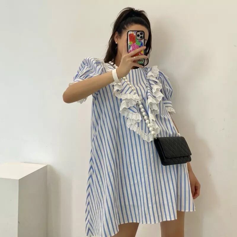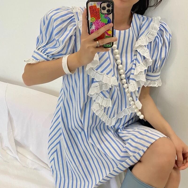 パフスリーブストライプワンピース