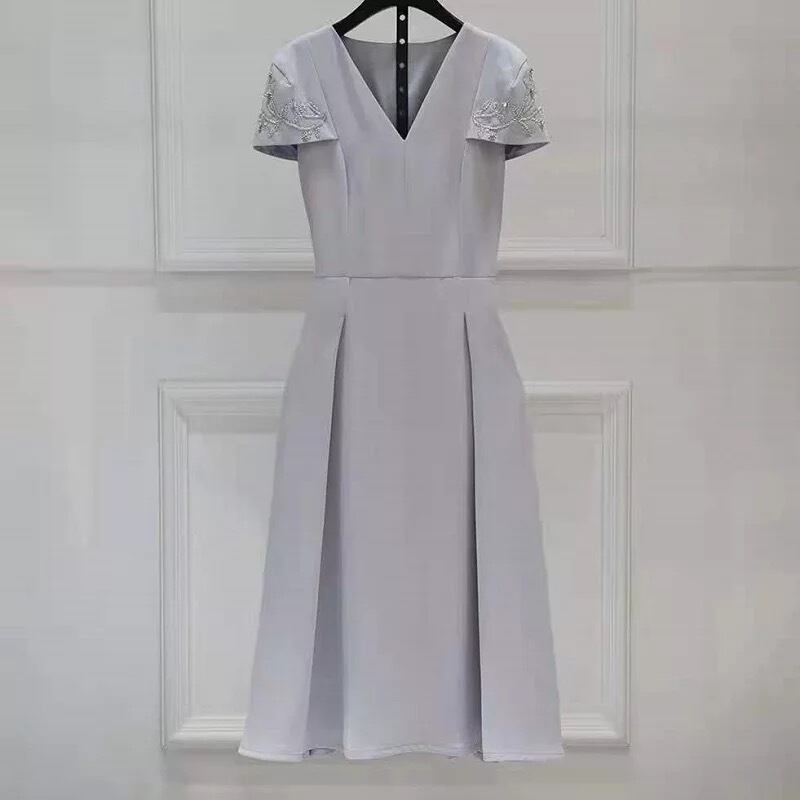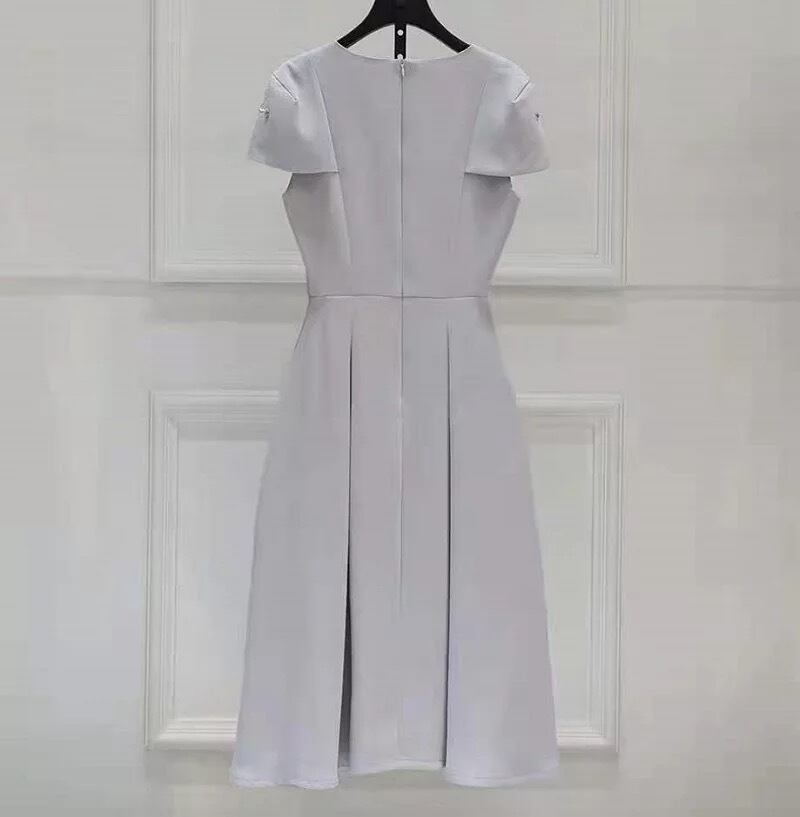 半袖ハンドメイドビーズ袖ワンピース グレー
