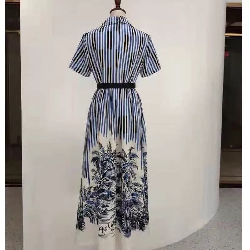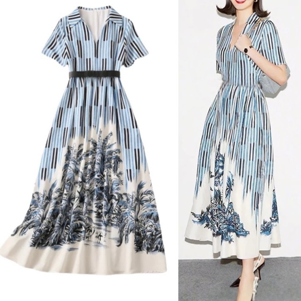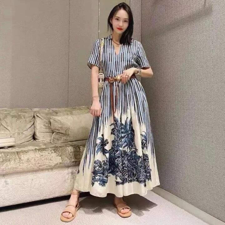 Vネックストライプワンピース