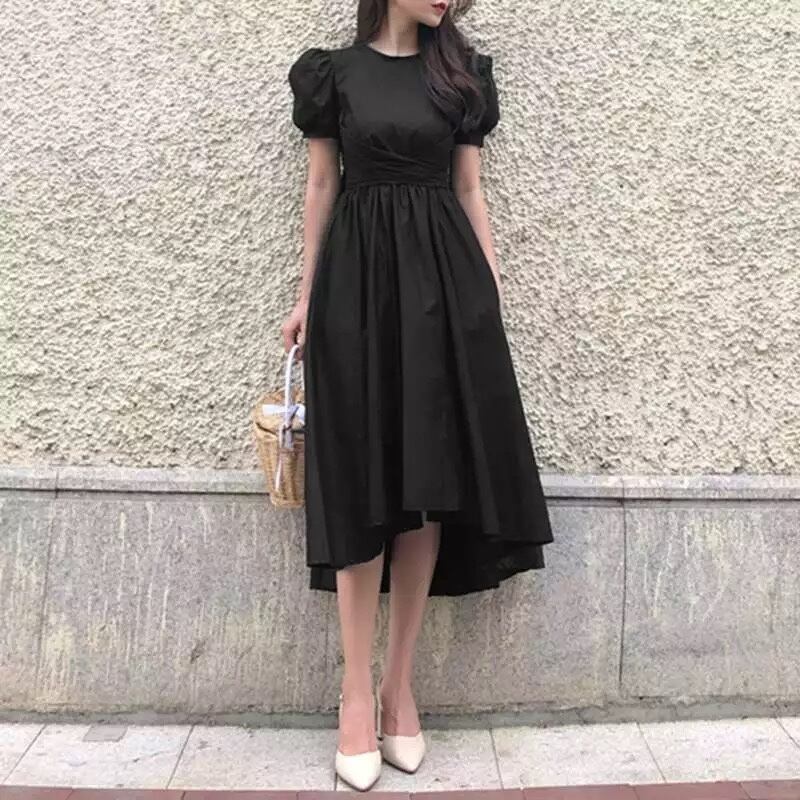 パフスリーブアシンメトリーワンピース ブラック