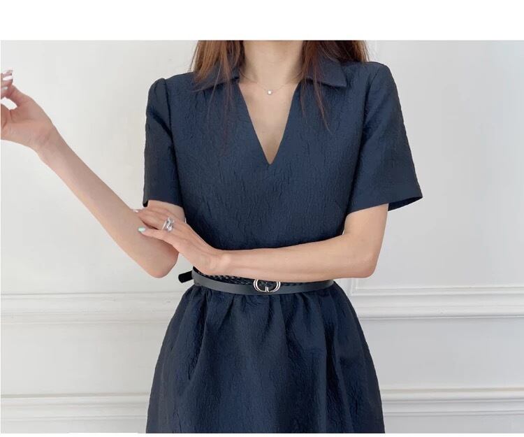 Vネック半袖ジャガードワンピースです
