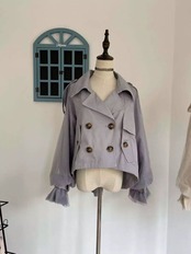 お袖の外側部分がシフォンデザインのジャケットコートです