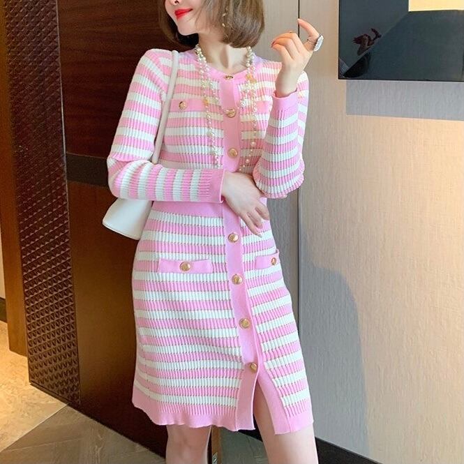 ゴールドラインの糸の繊細なボーダーを大人上品に見せてくれます。