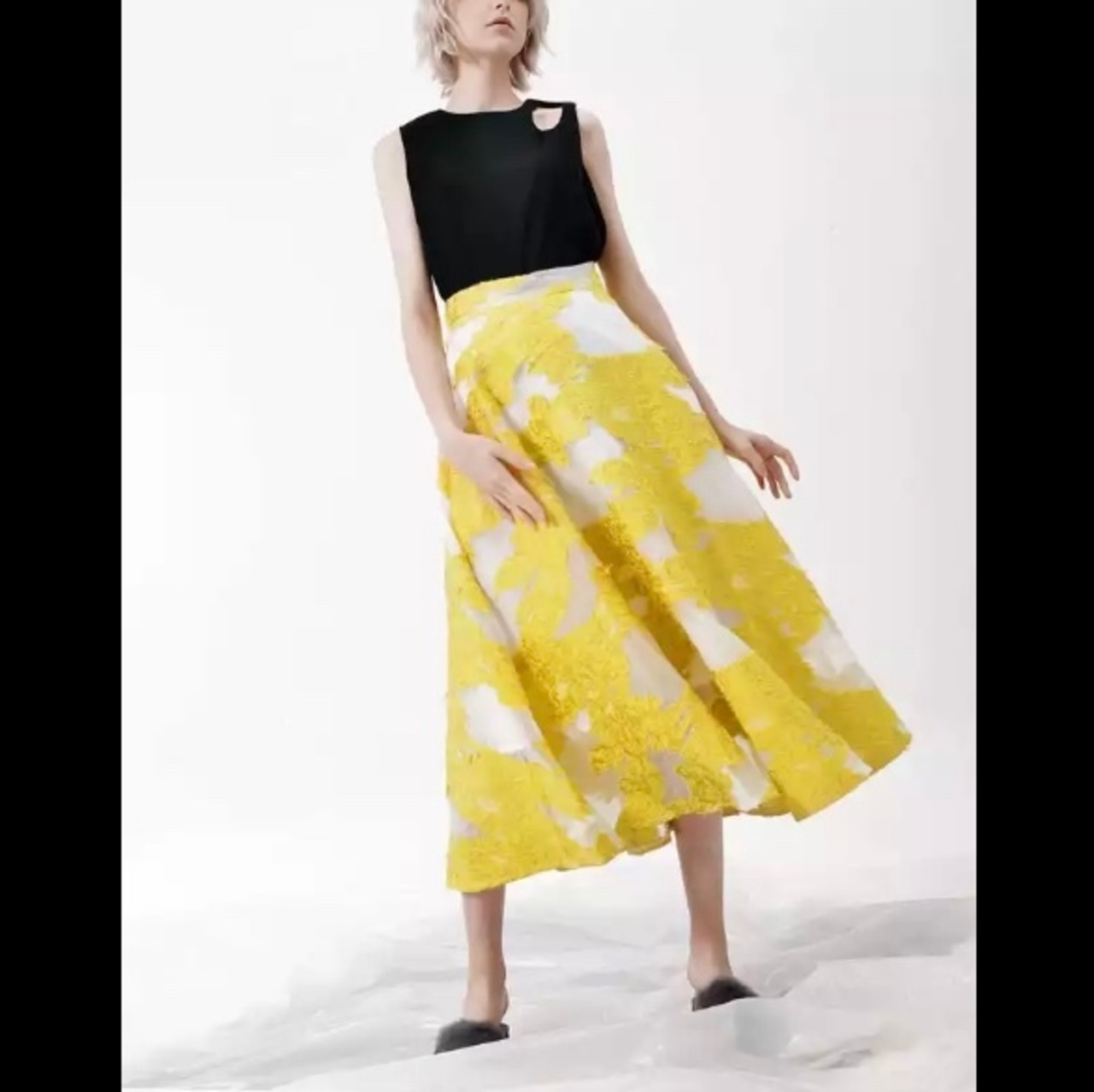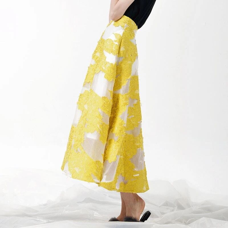 2018新しい夏のファッションイエローパッチワーク花刺繍ジッパーシンプルなすべてのマッチ薄い女性スカートs618