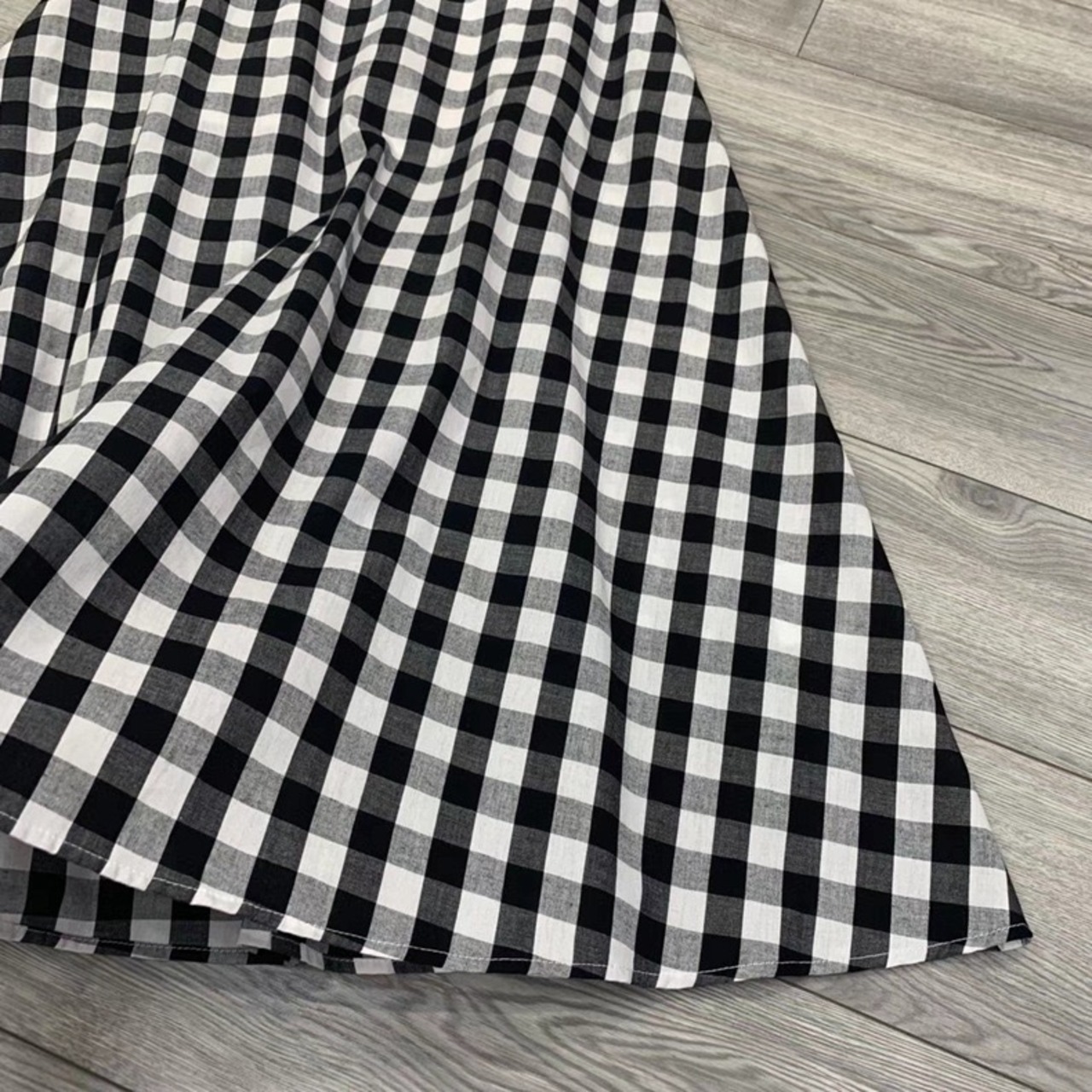 トップス部分にはチェック生地に刺繍が入ったデザイン
