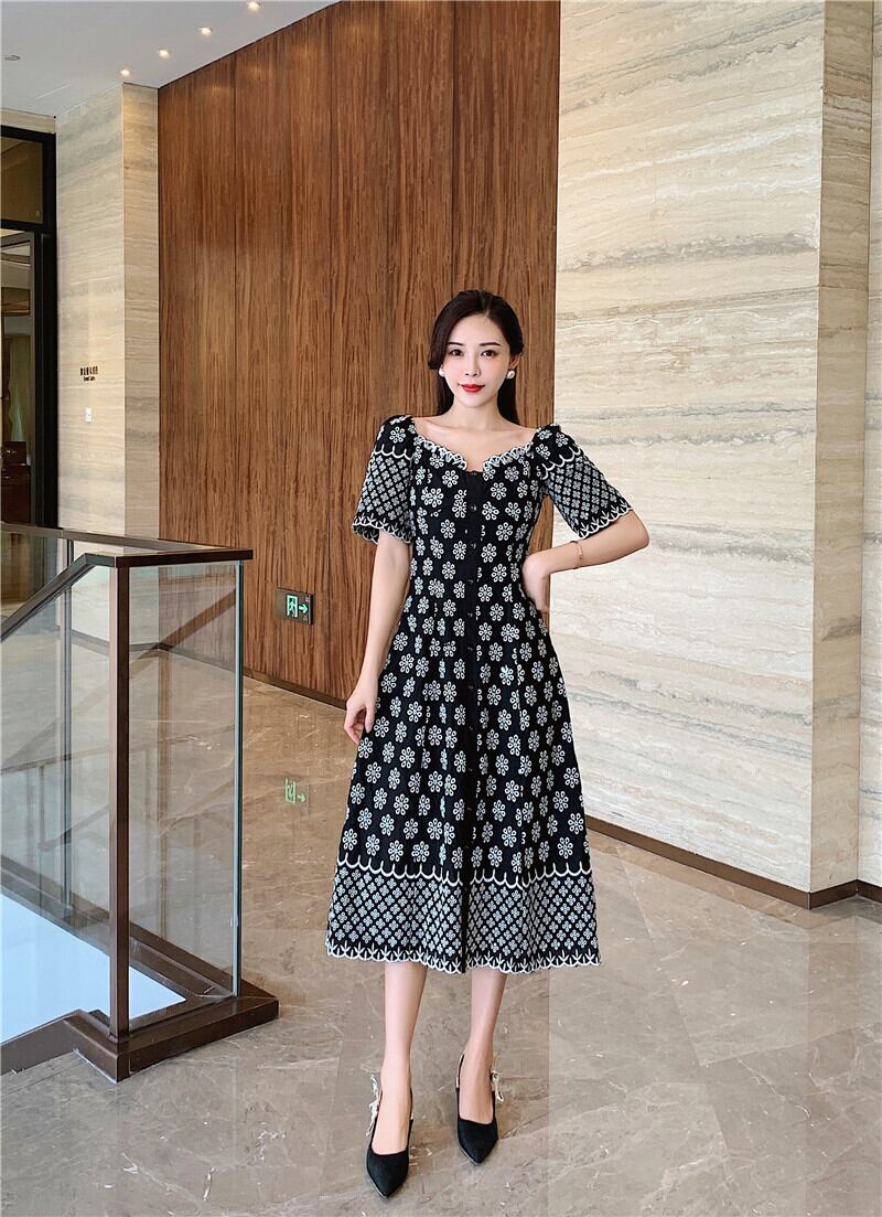 お袖付きで長い期間着れる綺麗ラインワンピースです