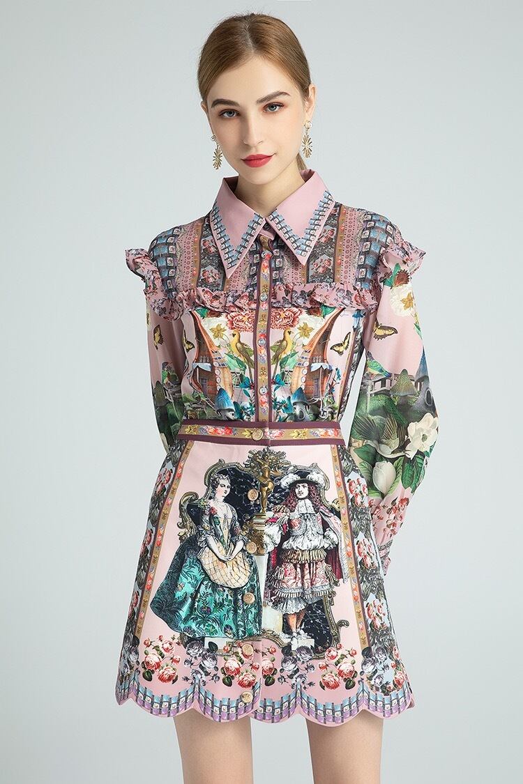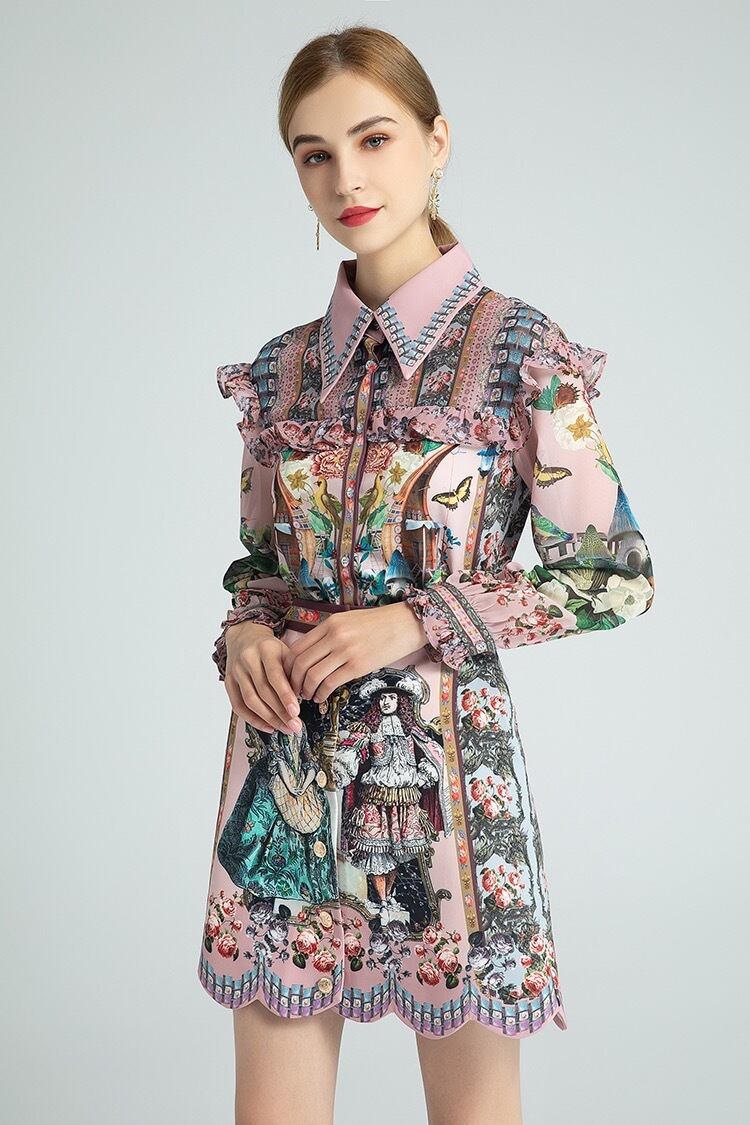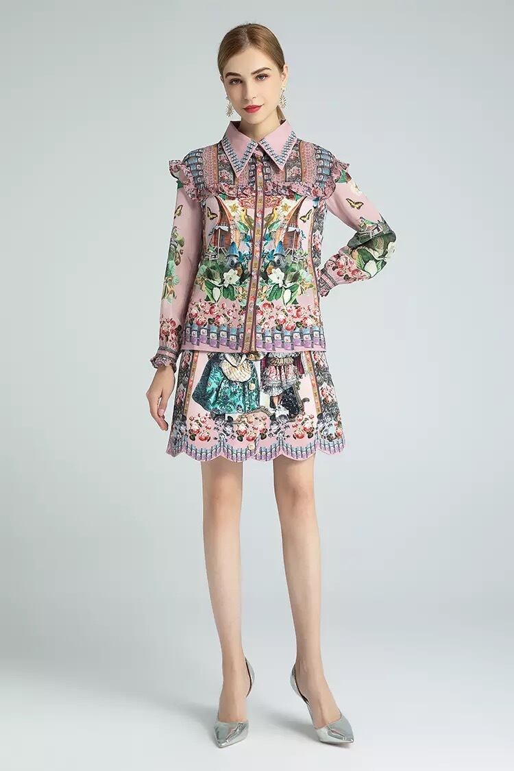 フラワーデザインブラウス、ハイウエストスカートセットアップ