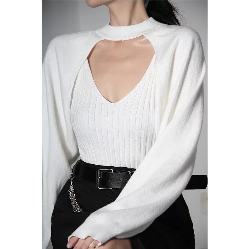 タンクトップと、長袖プルオーバータートルニットを重ね着ニットです。単品でもお使いいただけるセットアップニットです