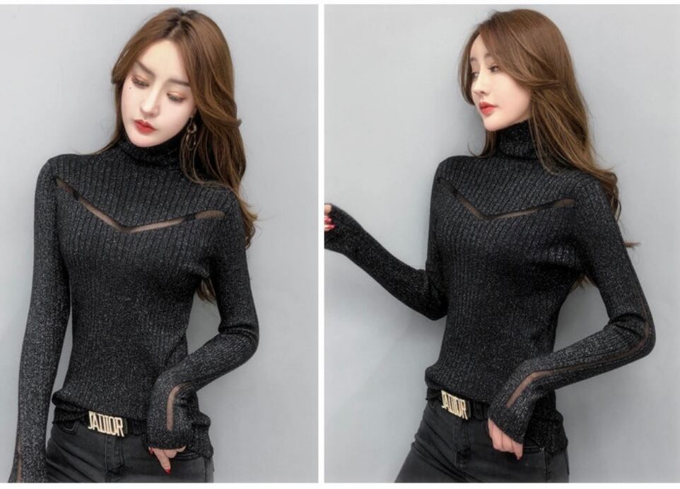 胸元のメッシュデザインがポイントとなるニットセーターです
