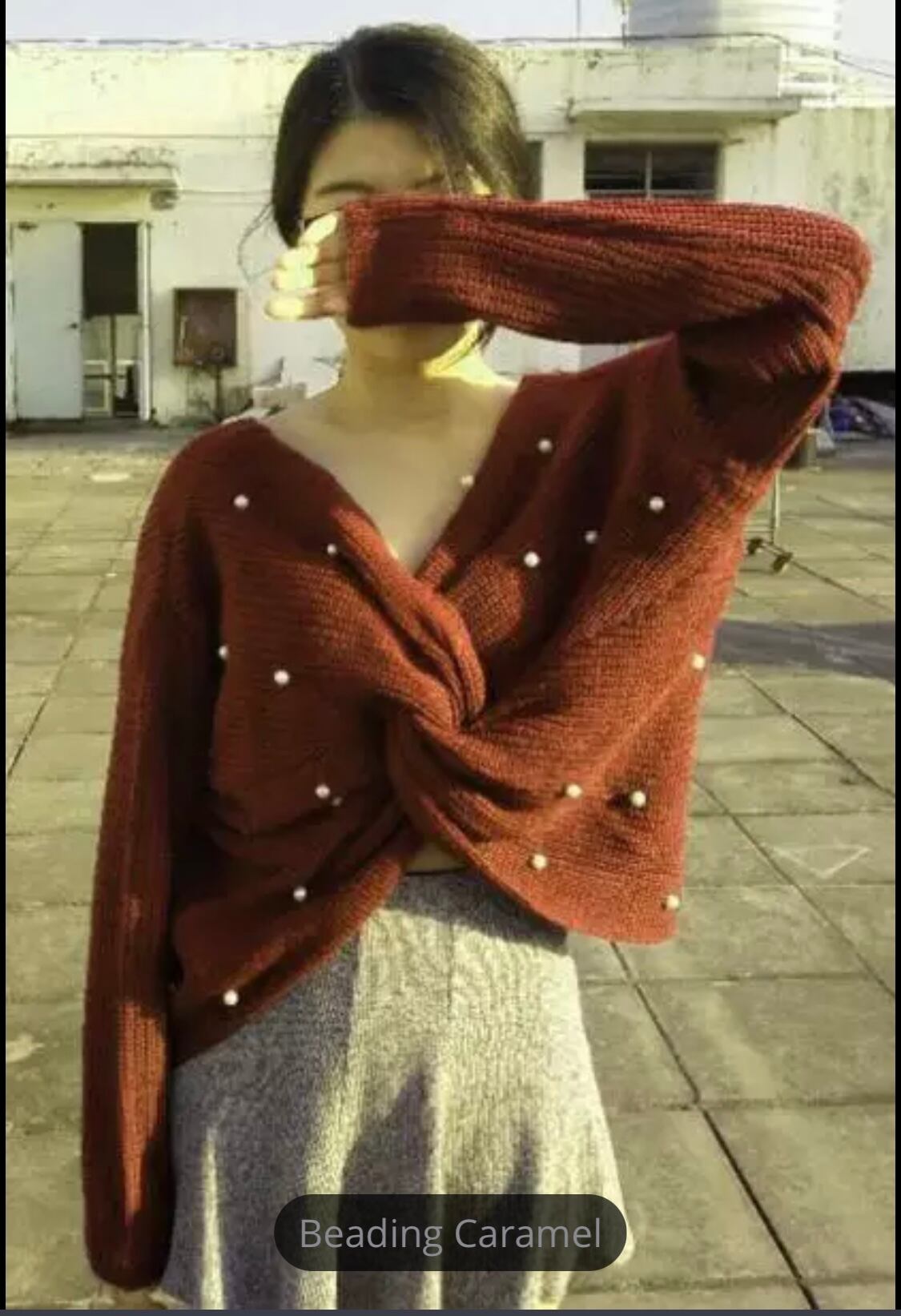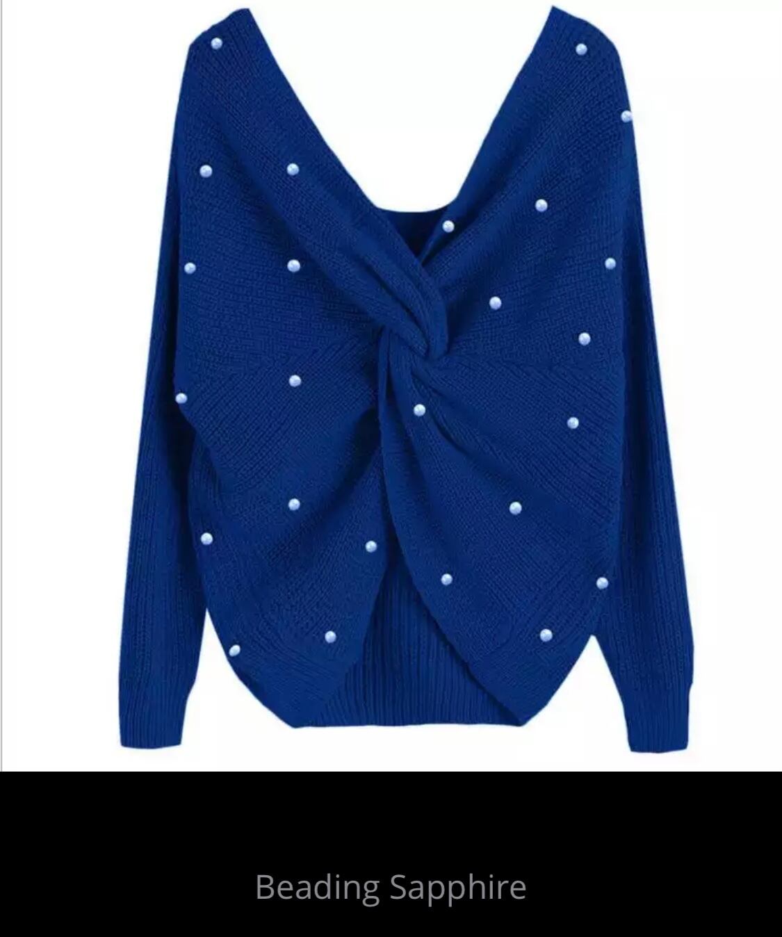 背中側パールボタン付きニット