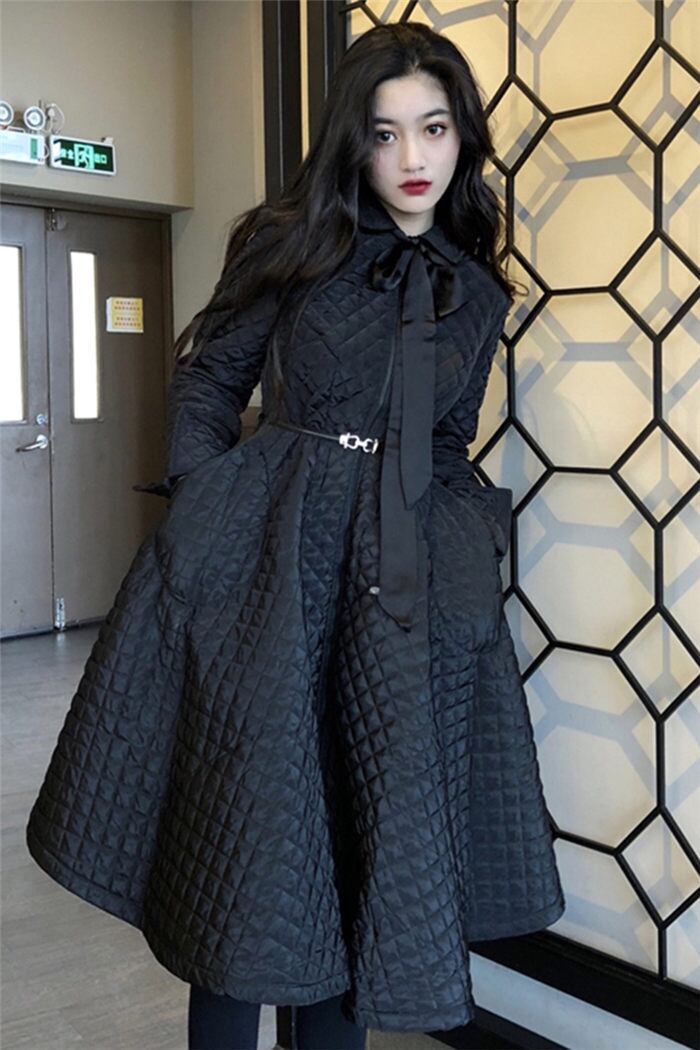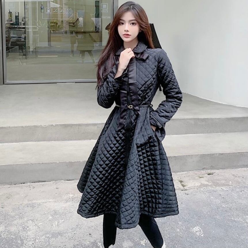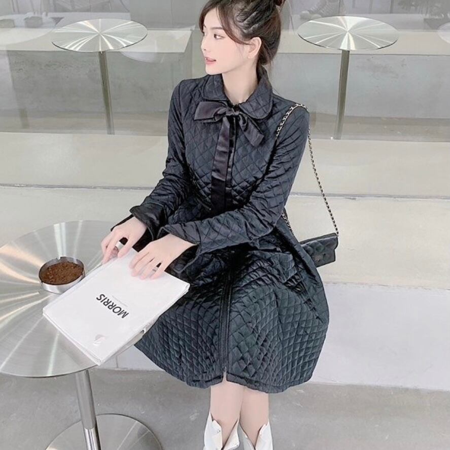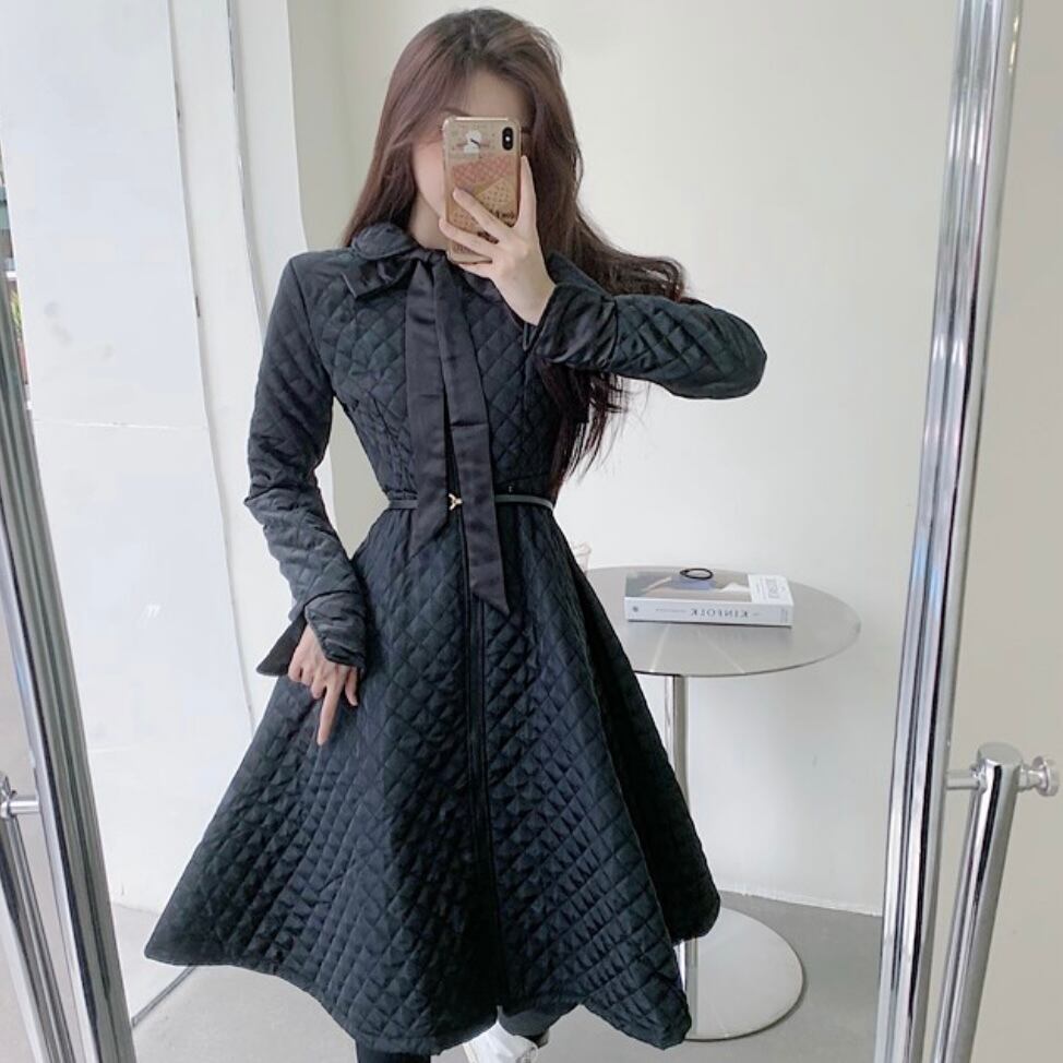 軽くて暖かい中綿リボンタイワンピース