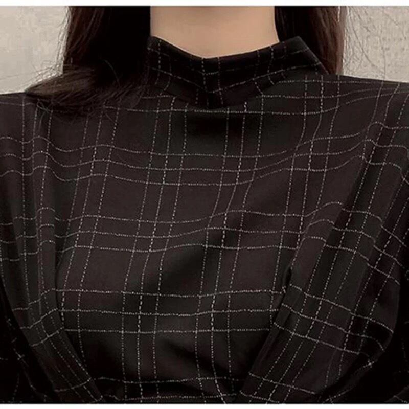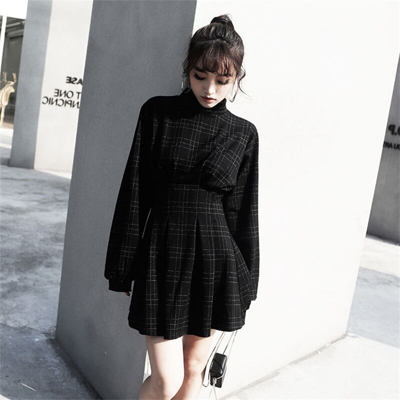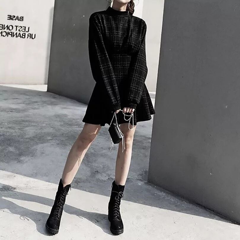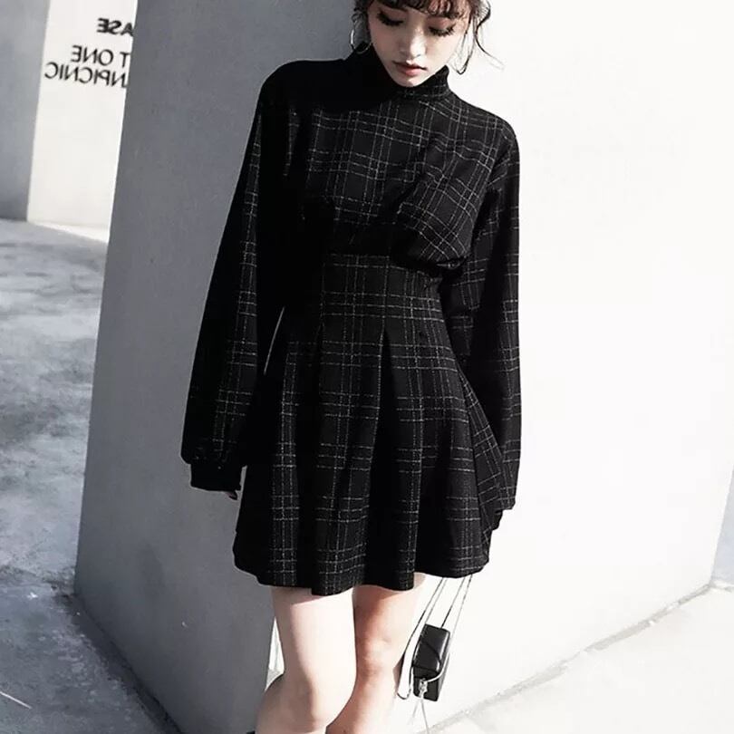 長袖チェックワンピース