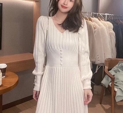 暖かいウールニットワンピース