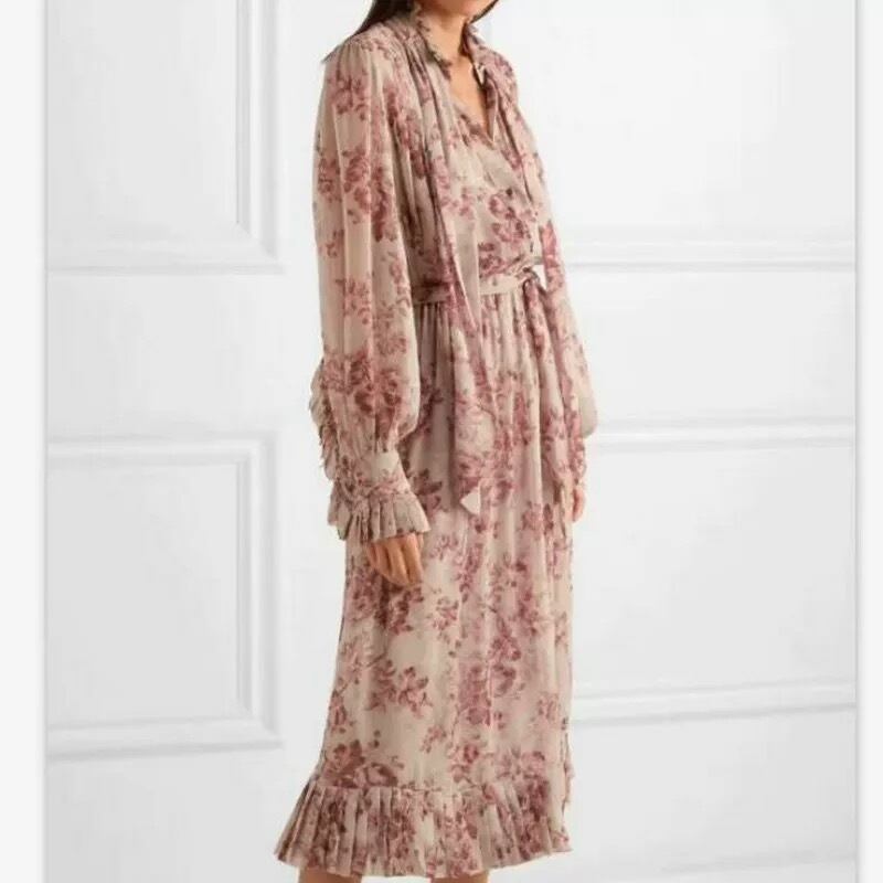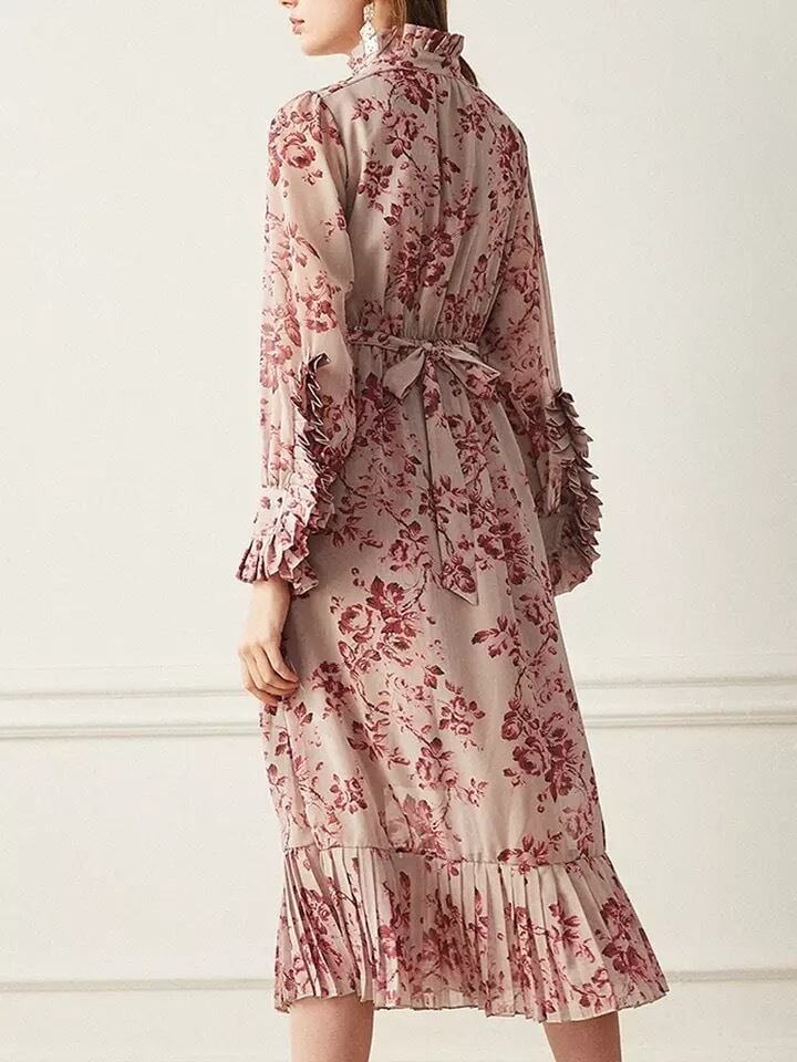 フラワープリントリボンタイワンピース