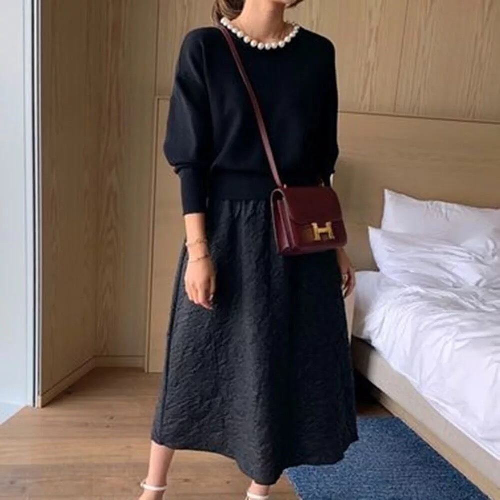 首周りのパールが顔周りを華やかにエレガントにみせてくれます。