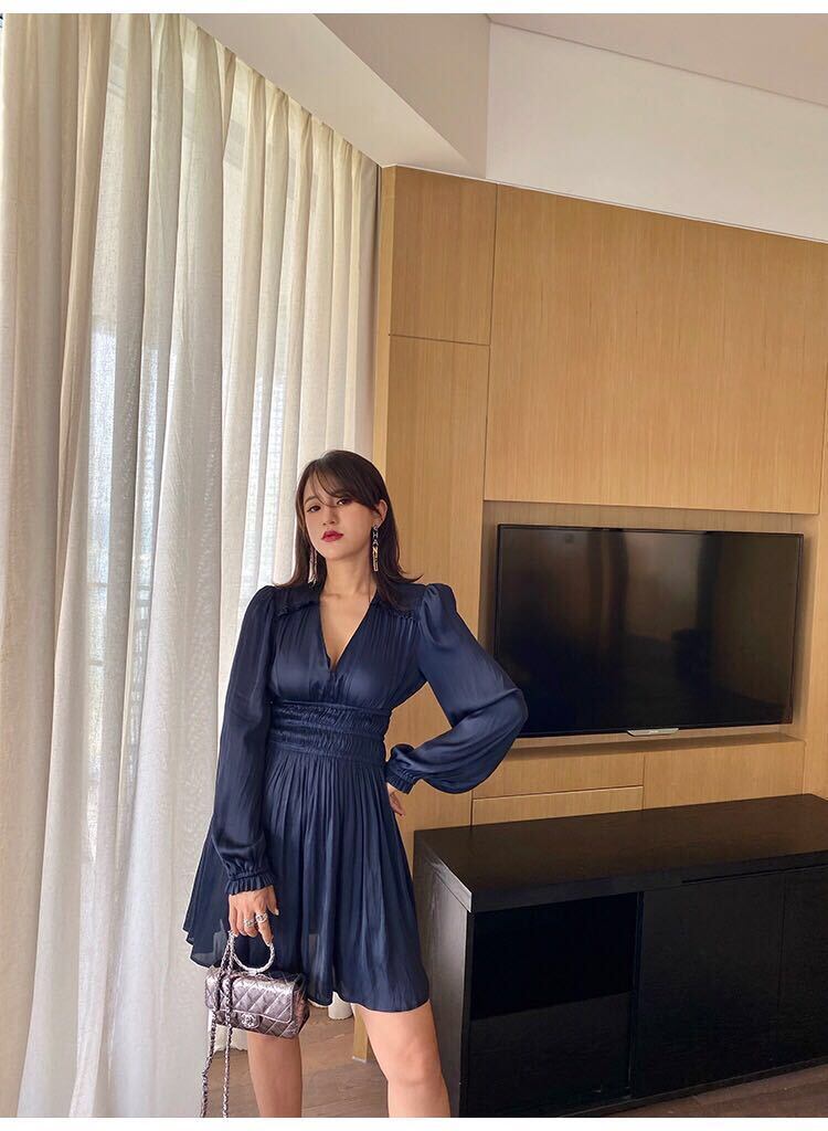 Vネックネイビーワンピース