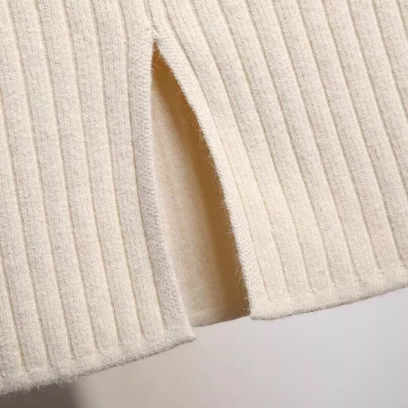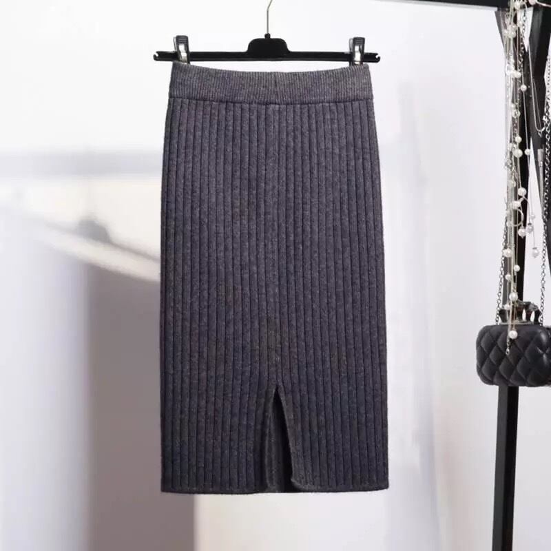 新秋冬の女性のニットスカートバックスリットエレガントミディペンシルニットハイウエストスカートレディース