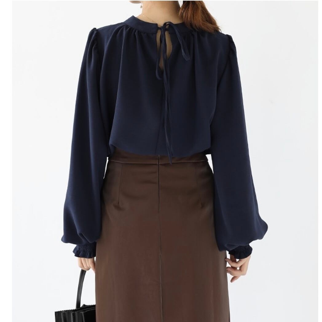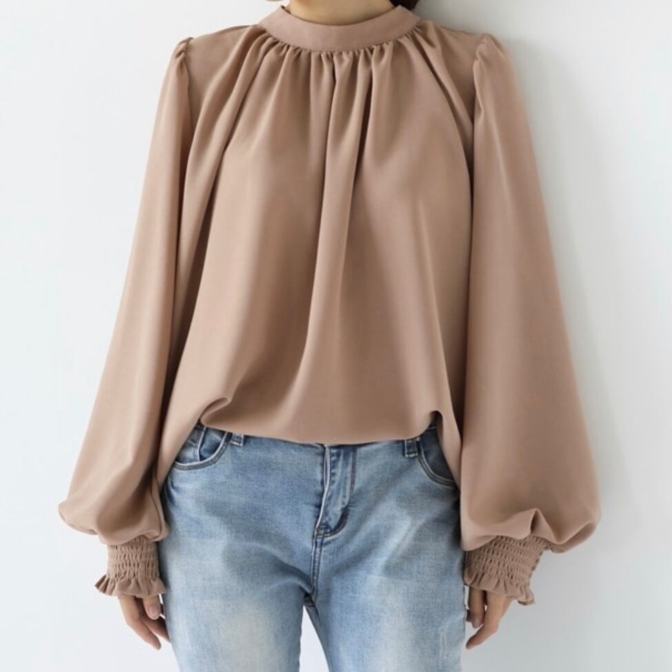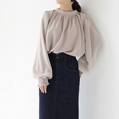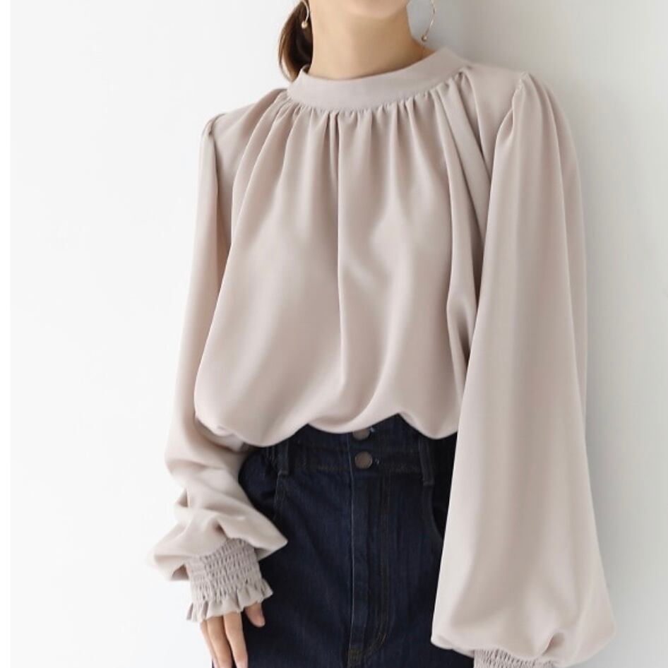 ギャザーネックとギャザーフリルが女性らしさを演出のブラウスです