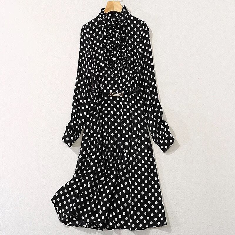 2020秋のプリントドレスエレガントなフレンチスタイル