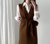 ウエストベルトを結び合わせても、ベルト無しのストレートに着こなしもおすすめです