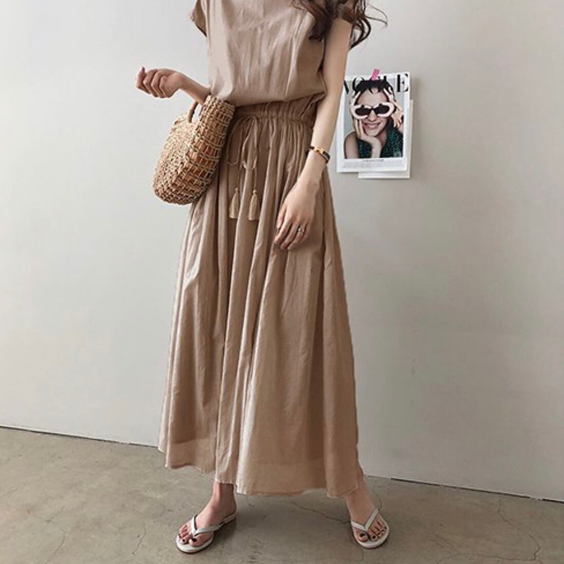 ウエスト楽ちんゴムワンピース