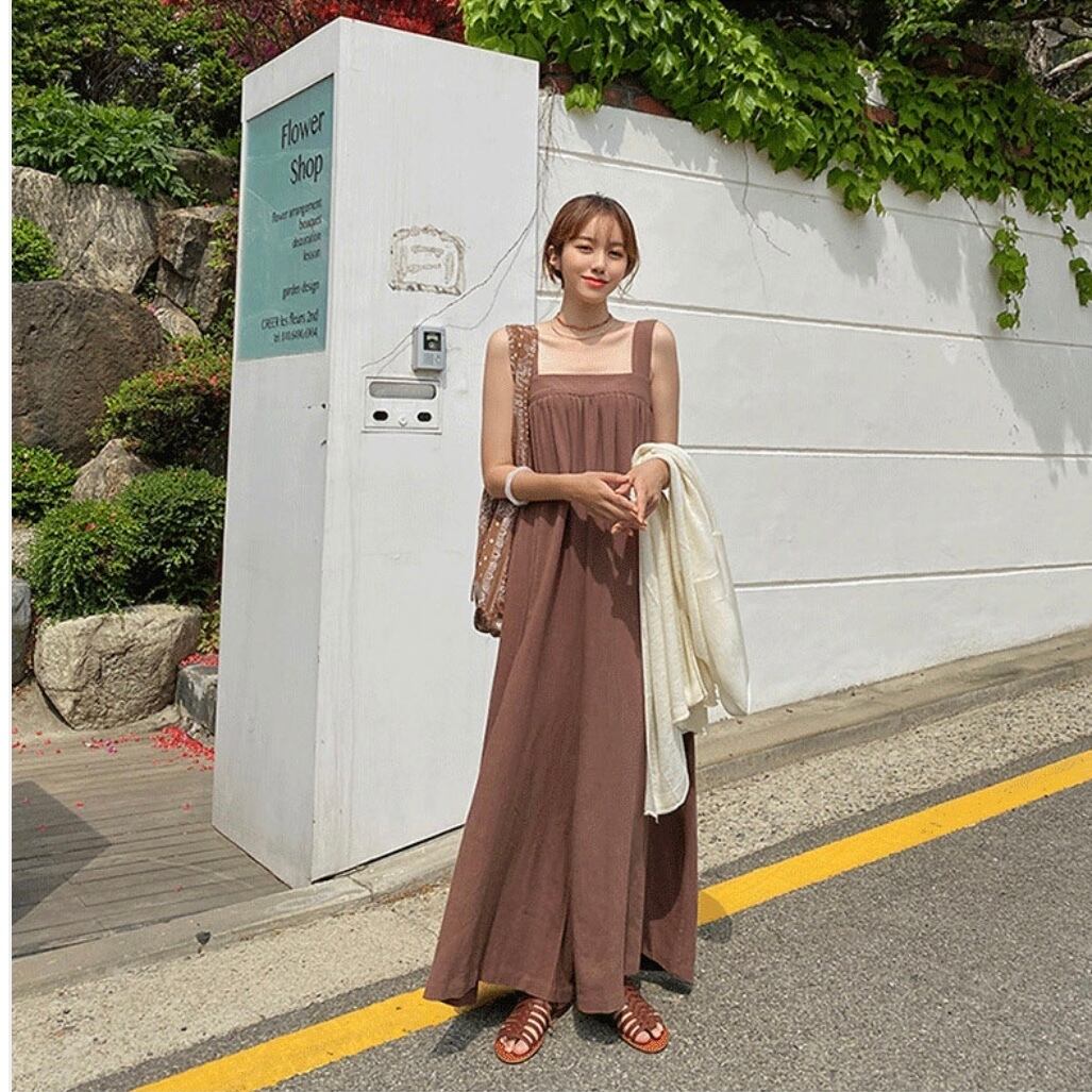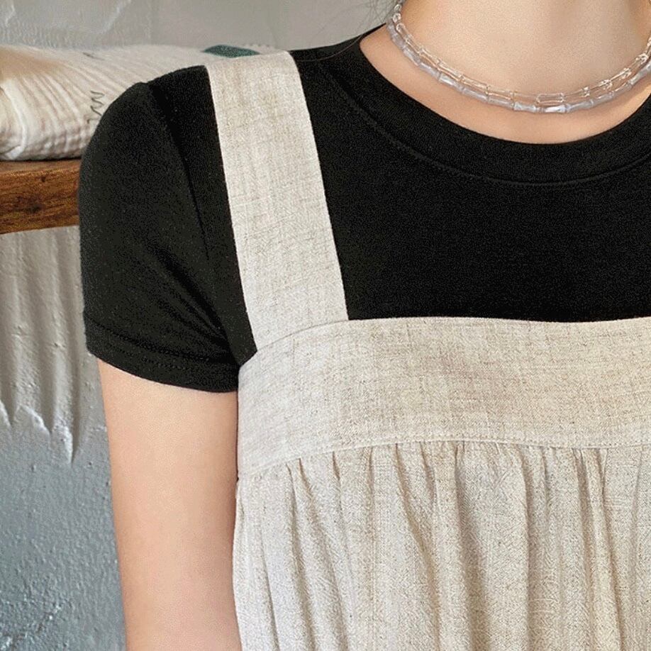 シンプルナチュラルリネン風ワイドオールインワン 3Color