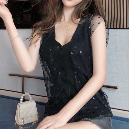 ドット透け感のお袖の