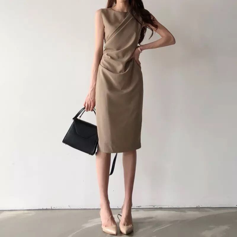 ウエスト周りのシャーリングがお腹周りをスッキリほっそり見せてくれます