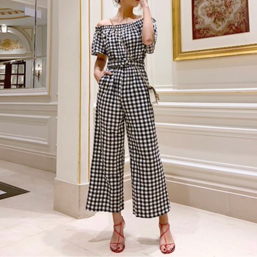ギンガムチェックジャンプスーツ