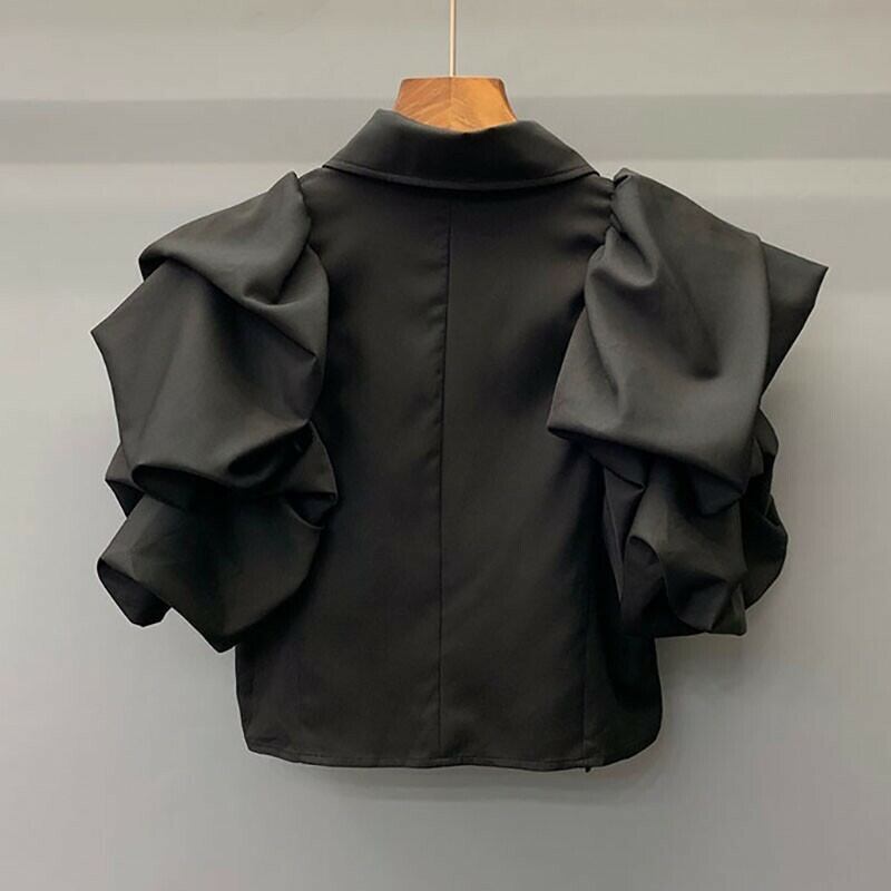 可愛いフリルトップス袖にアシンメトリーな裾デザイン