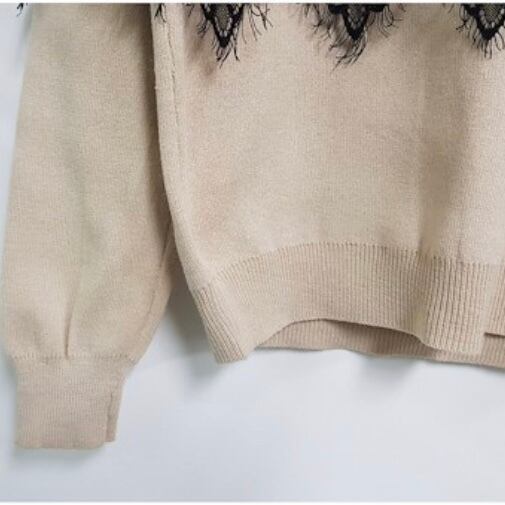 オシャレなレースディテールがフェミニンな雰囲気を演出。ボトムスを選ばなく合わせやすいコーディアイテムです