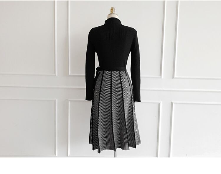切り替えデザインニットプリーツスカートデザインワンピースです