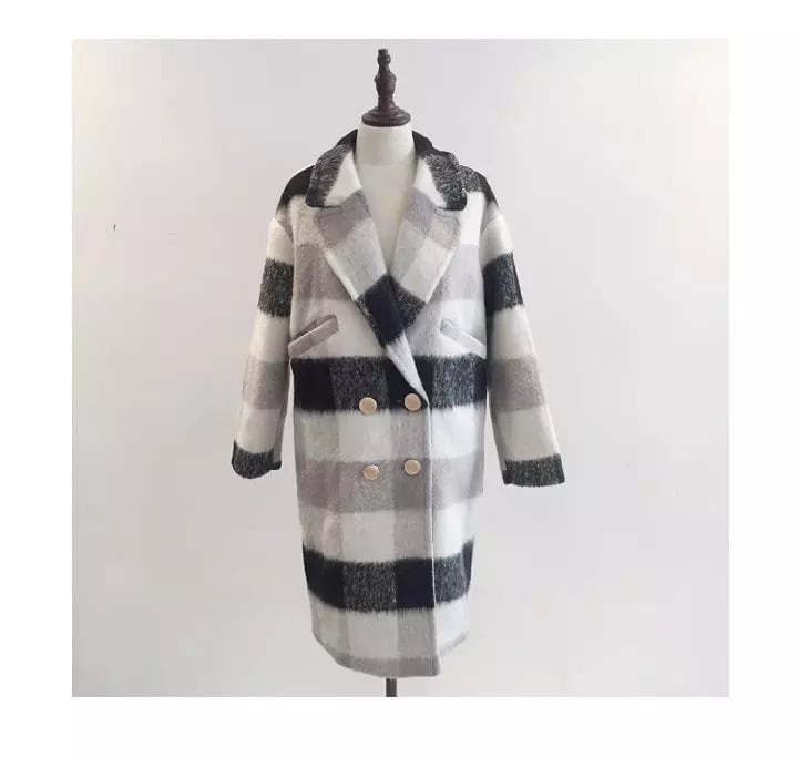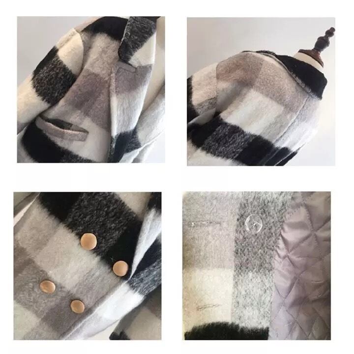 秋冬エレガントなファッションロングウールコートの女性黒と白のチェック柄ウールブレンドコートとジャケット女性コート