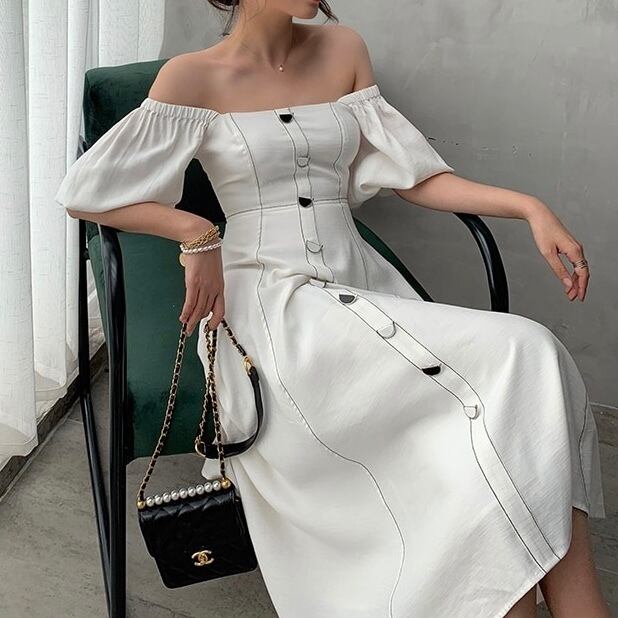 2wayタイプにより、肩にかけフレンチスリーブとして、お好みによりオフショルコーデとしても着用できます。着丈もミディ丈