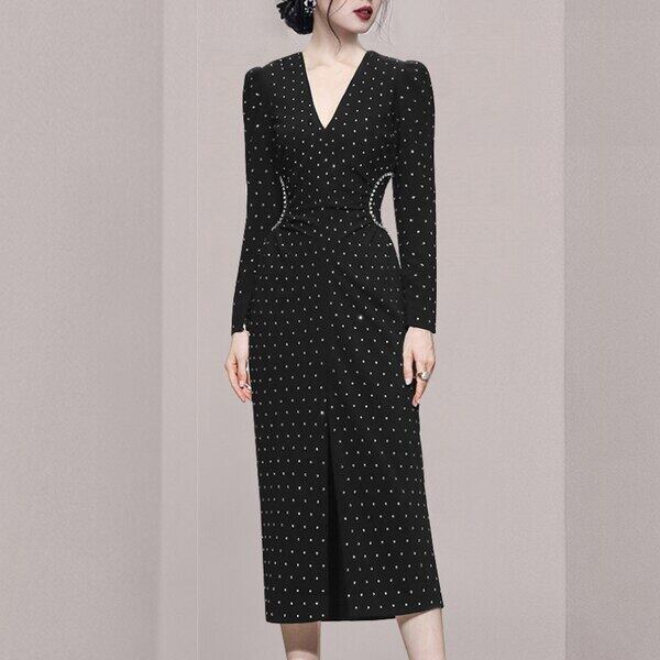 小さなドット柄をたっぷりあしらったミディ丈のワンピースが登場しました。