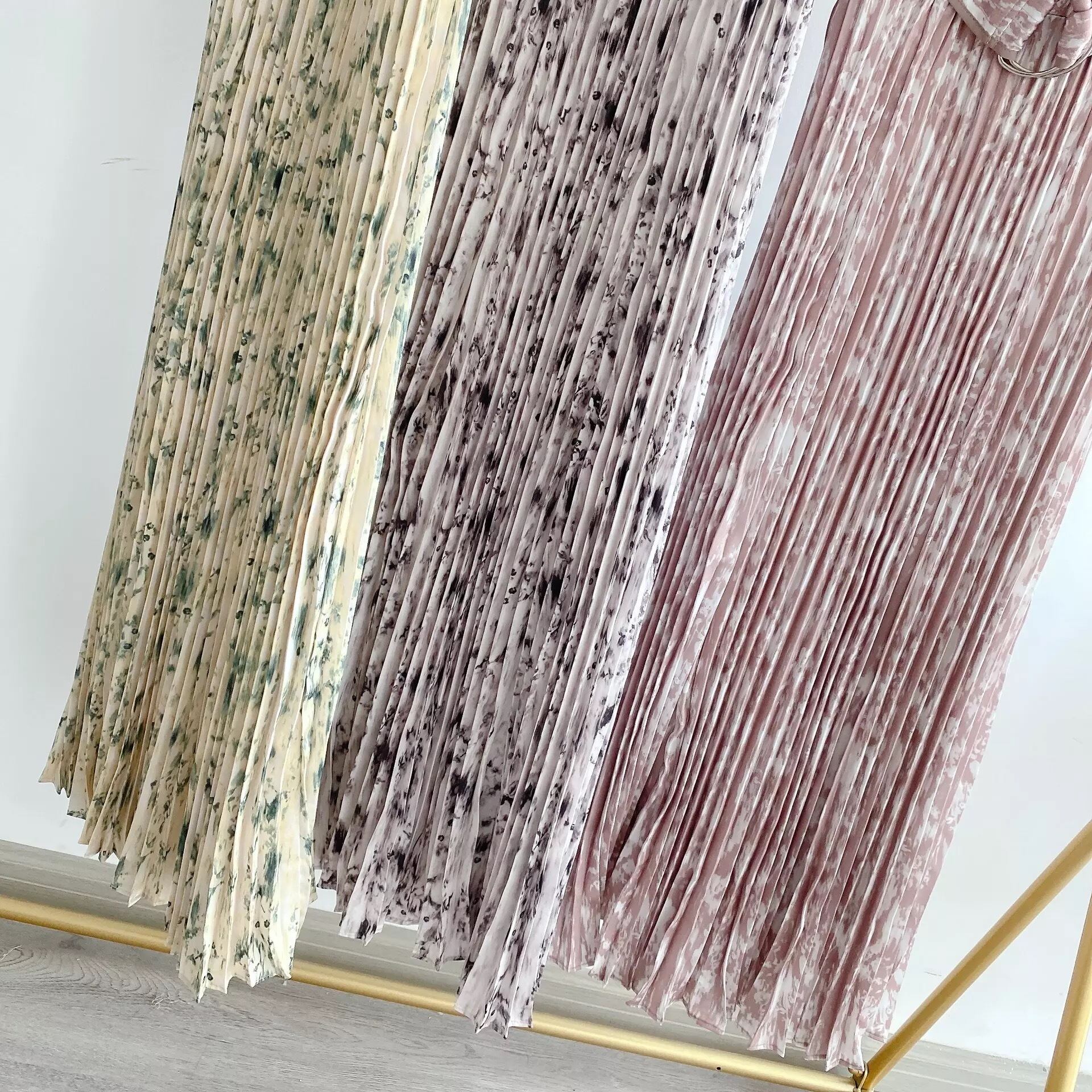 エレガントなパーティープリーツドレスレースアップスリムワシットプリントロングドレス